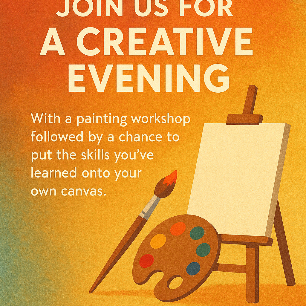 Join us for a creative evening. With a painting workshop followed by a chance to put the skills you've learning on to your own canvas.